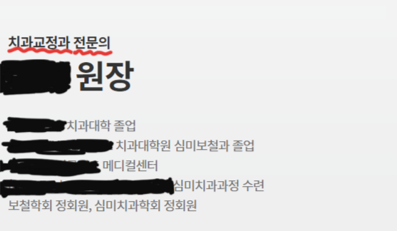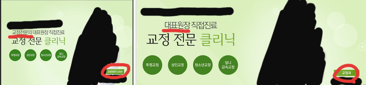지인이 보내준 건데 원래 좌측과 같이 '교정전문의 대표원장 직접진료', '교정전문의 교정과' 이런 식으로 적어놨다가