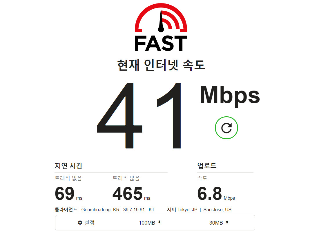 아무튼 따라서 대부분의 사무용도 및 일상용도로는 100메가 인터넷 속도로도 충분합니다.