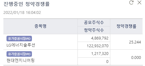 lg 에너지솔루션 공모주 청약 경쟁률 현황