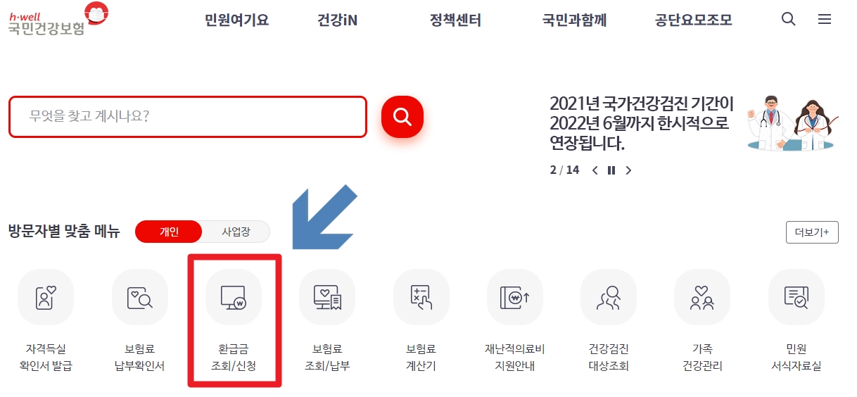 본인부담환급금에 대해 지급신청 안내문을 받으신분, 받지 못하신분 모두 아래 절차대로 진행하시면 됩니다.