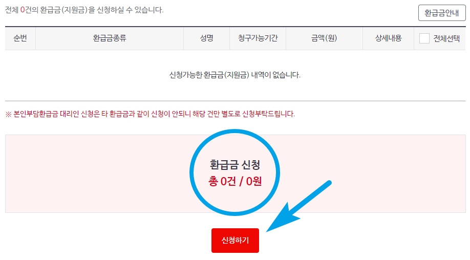 본인부담환급금 신청시 주의사항